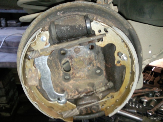 Перед началом работ необходимо зафиксировать автомобиль, поднять разбираемую сторону, подставить под нее козелок и только после окончательно снять колесо.