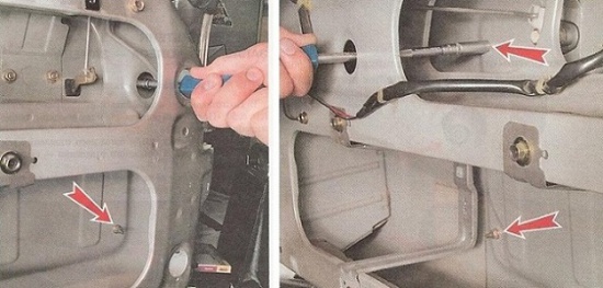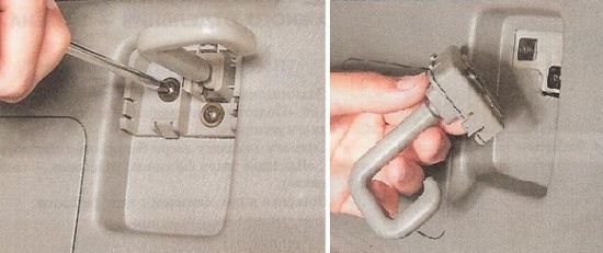 Крестовой отверткой выворачиваем два винта крепления крючка и снимаем его.