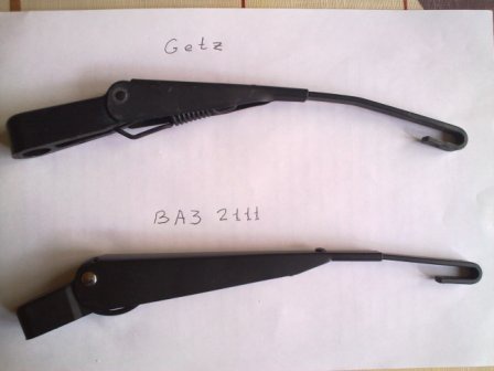 Достало что задний дворник не чистит стекло. Решил проблему кординально - заменил поводок стеклоочистителя пятой двери на поводок от ВАЗ 2111. Дабы объяснить свой выбор - сравним поводки, для этого ключом на 12 открутим родной поводок стеклоочистителя Гетц