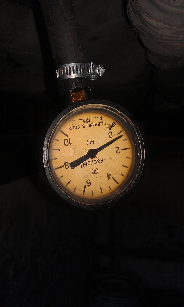 Да, еще при увеличении оборотов давление растет, при 3000 об давление около 3 кгс/см2. На фото второй манометр на холостых оборотах