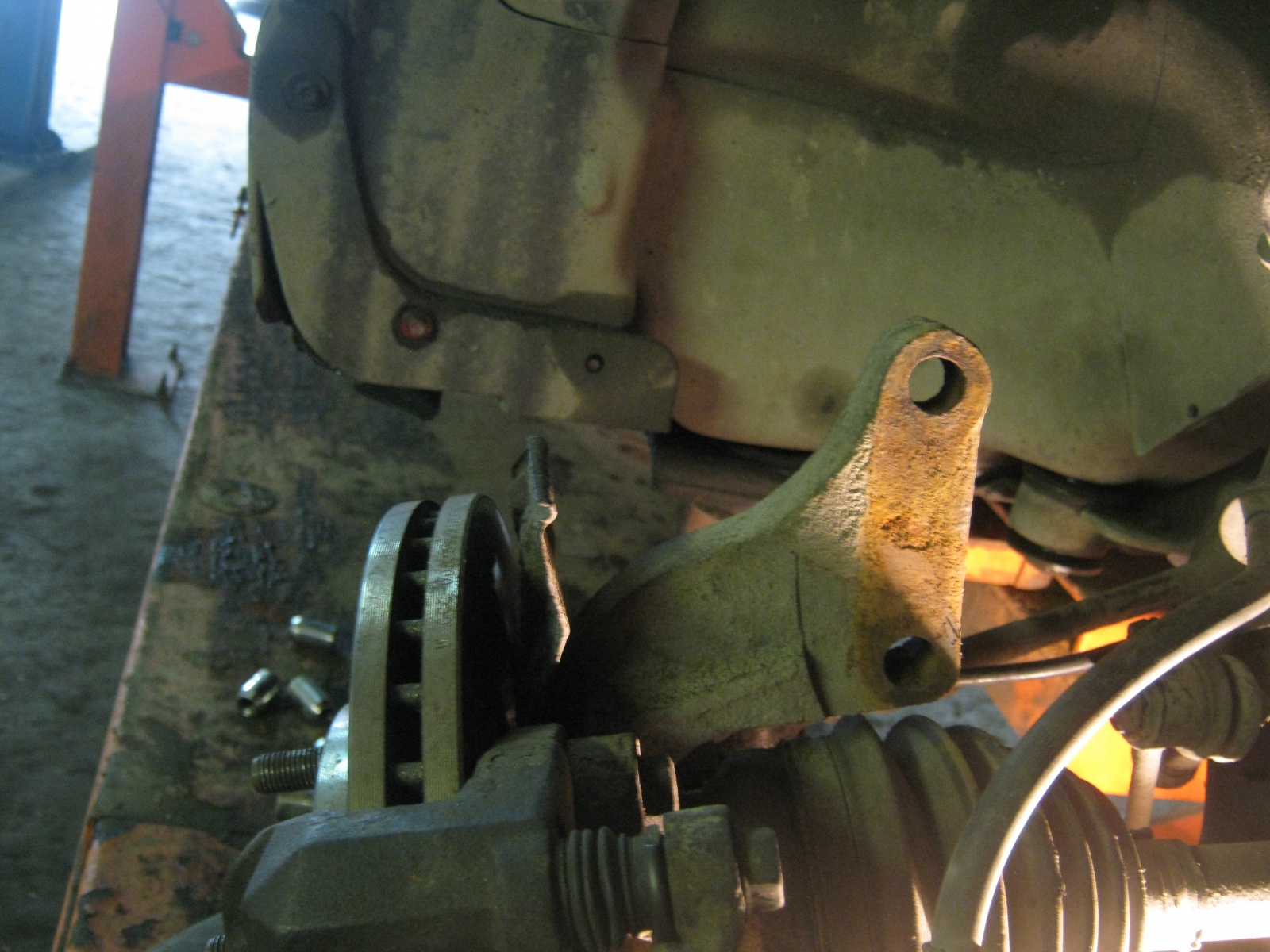 Уж не знаю каким образом, но вытянулся метал на поворотном кулаке, в месте соединения со стойкой! Определил приложив плоскость к тормозному диску и замерил расстояние от нее до верхнего отверстия. Разница составила 10 мм с левой стороной!!!!