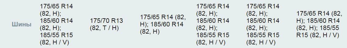 Рекоммендуемая заводом размерность шин для Лады Гранта
