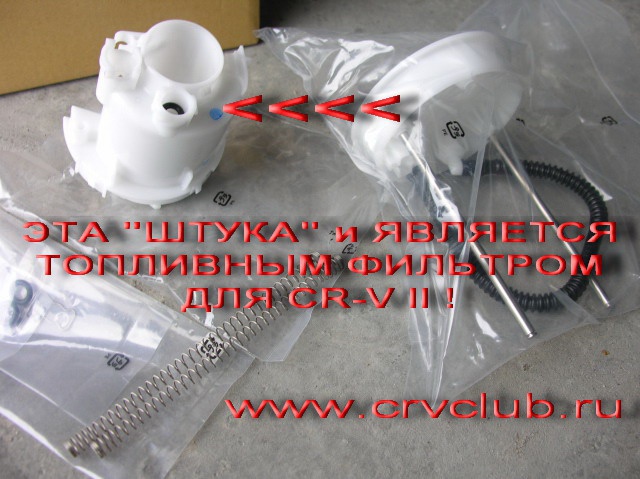 sergeyy75: Форумчане поясните, молодому эксплуататору, заказал все фильтра, вроде бы все хорошо но одно смущает топливный почти как на жигулях инжекторных, и получается что он установлен где то снаружи. Но исходя из инструкций форума он в баке. То ли я на асфальте стою в лыжах, то ли не пойму. CR-V 2, 2005 год