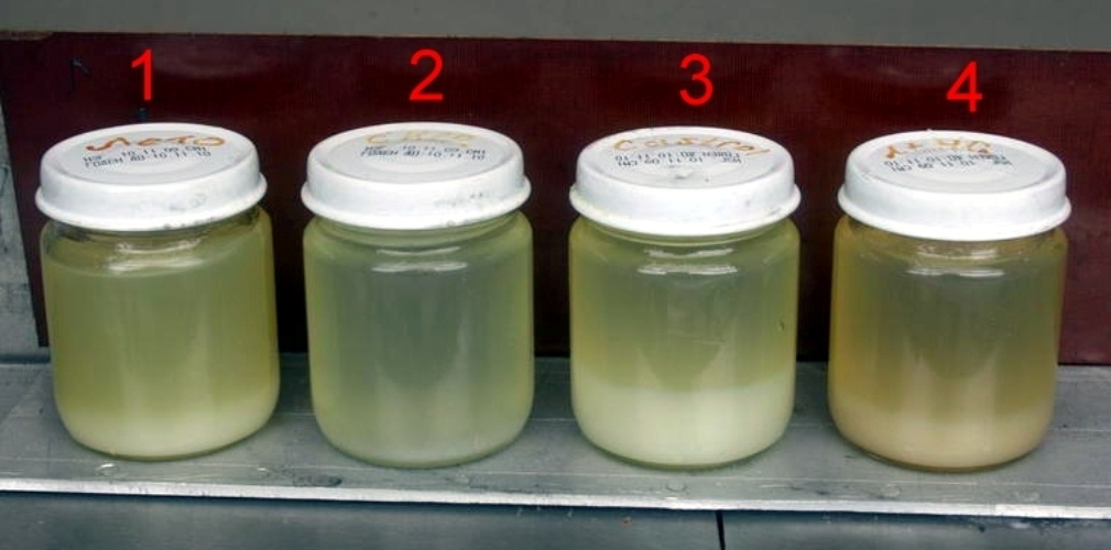Четыре баночки заполненные одинаковой летней соляркой. В три из них залиты различные присадки (по рецептуре в описании) которые якобы уменьшат кристаллизацию парафина. Во время теста температура за бортом - от -15 до -20. Время тестирования - более суток