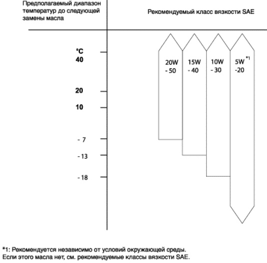 Рекомендуемые марки вязкости по классификации SAE