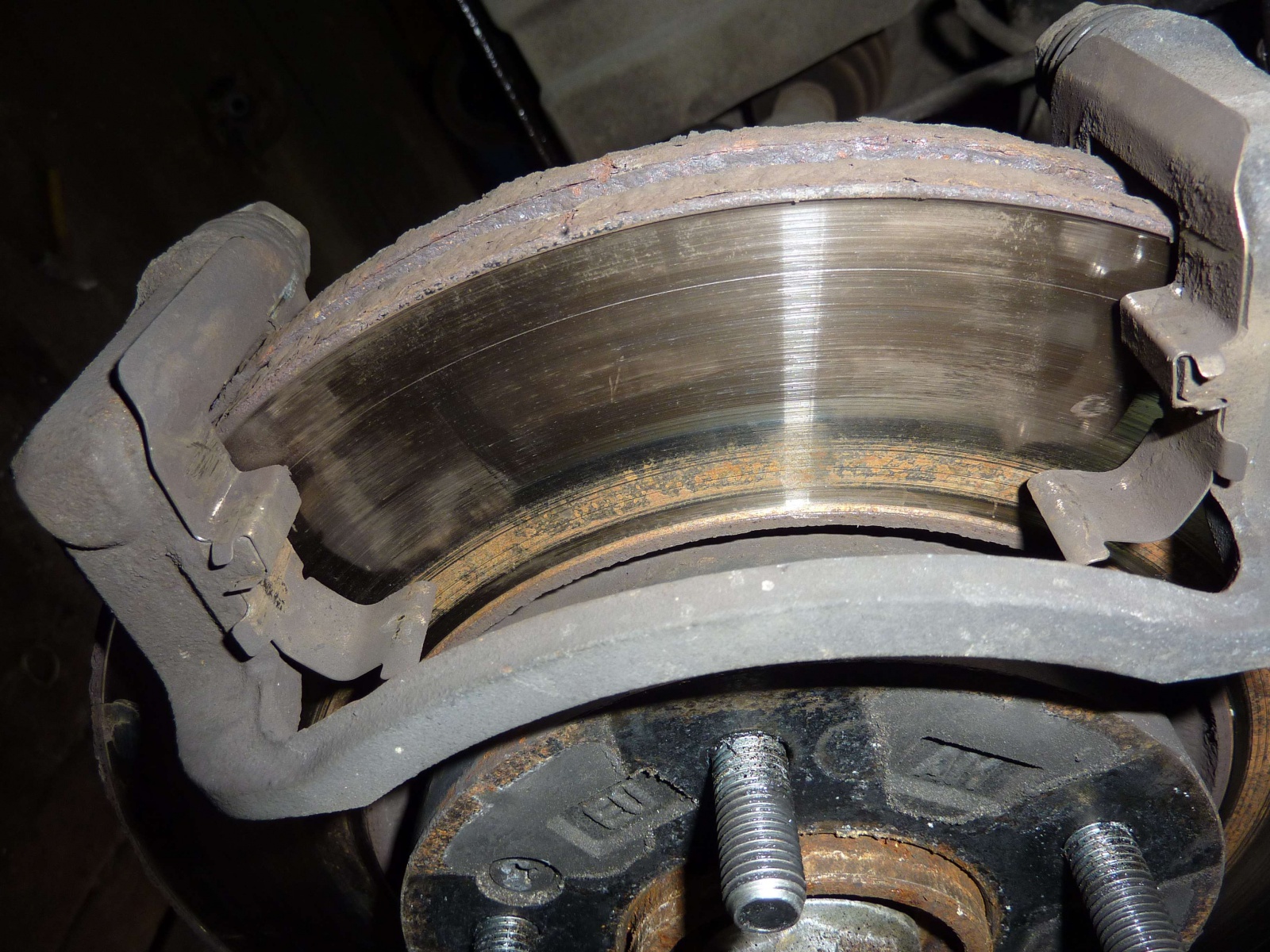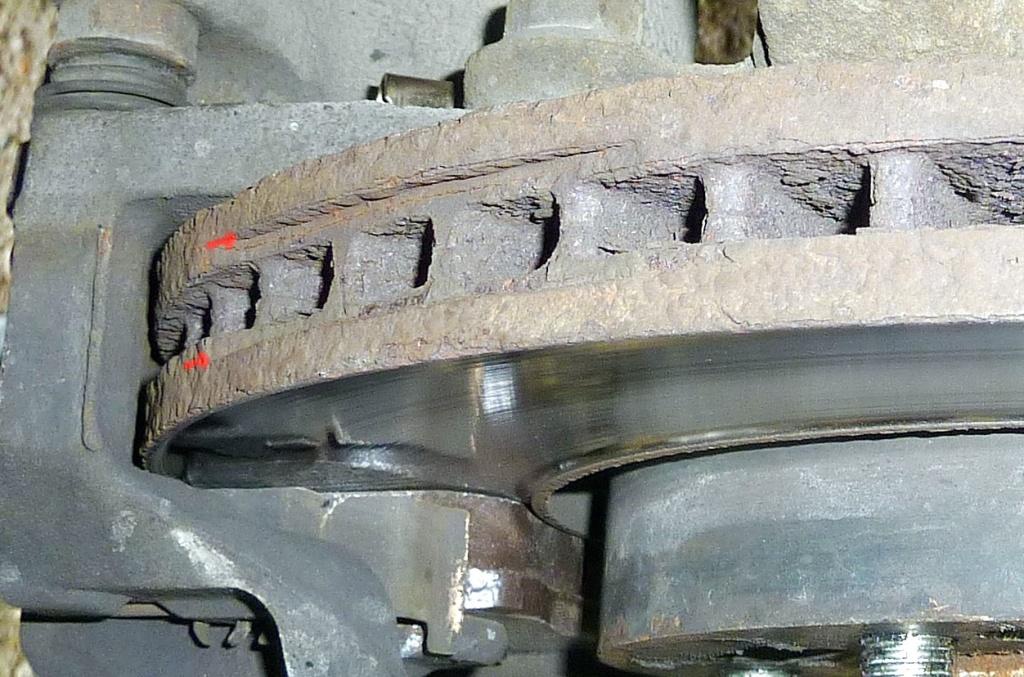 После замены колодок все же возникла некотороя проблемка. На одном из дисков (перед слева) появилась полоса ржавчины которая могла говорить о том что либо колодки не дожимаются, либо геометрия тормозного диска оставляет желать лучшего. Кантик на этом диске был больше чем на остальных (вероятно из-за того что тормозная система этого колеса в свое время подклинивала)