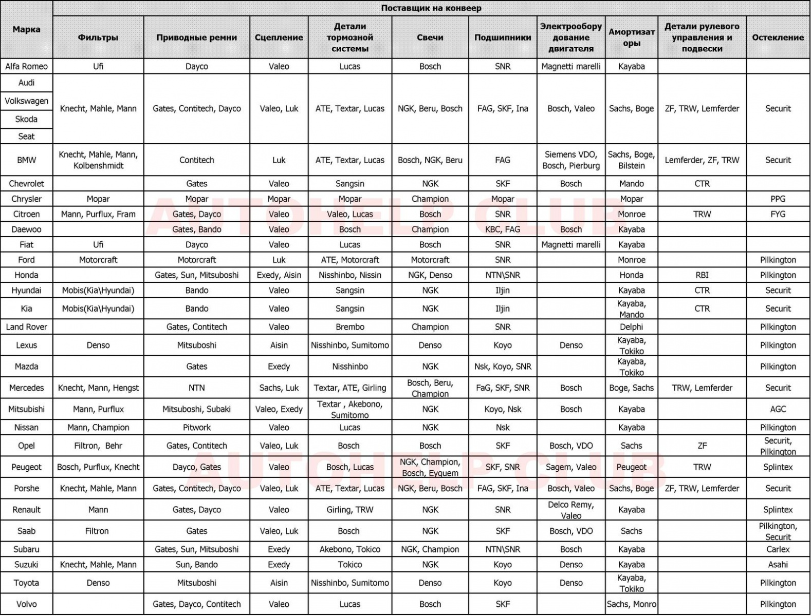 Я не спорю , что MANN хорошие расходники . Вот табличка расходников , которые поставляются на заводы изготовители .