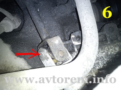1. В моторном отсеке ослабляем затяжку болта на хомуте, соединяющем вал переключения передач и привода