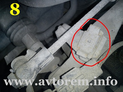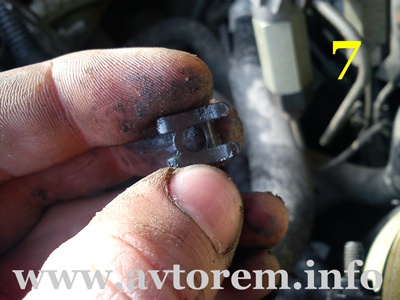 2. Вытаскиваем пружинный фиксатор и малую ось, соединяющую шток переключения передач с приводом (фото 6 и 7).