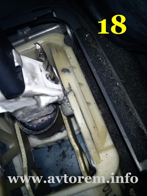 2. После этого в салоне Ланоса просто снимаем чехол с кулисы переключения передач, а вот в салоне Нексии придется снять обшивку тоннеля для доступа к механизму.
