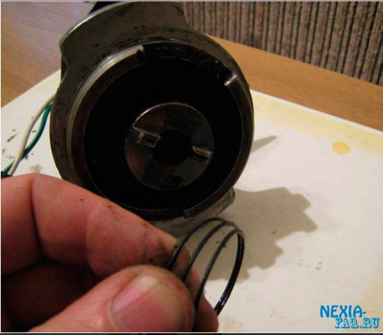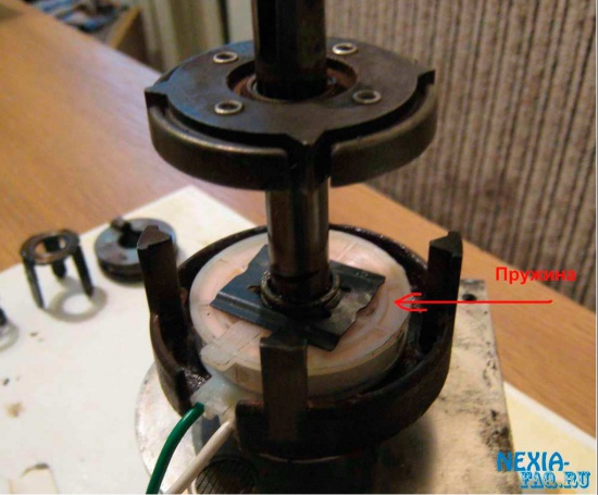Снимаем пружину, удерживающую катушку (на фото показана новая катушка)