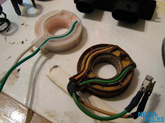 При этом, следует обратить внимание что на одной из сторон катушки имеется выступающий пластмассовый штифт, который должен лечь в отверстие в корпусе трамблера.