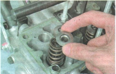 Сухари клапана должны соедениться с проточками на стержне клапана и с тарелкой пружины.