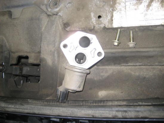 .На клапане есть электрический разъём, отсоединяем его, после чего необходимо открутить два болтика на 8, верхний откручивал из под капота, а нижний из ямы.
