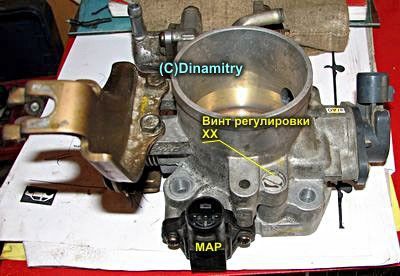 В самом дроссельном блоке тоже наростает слой грязи и загрязняются отверстия дополнительной регулировки холостого хода и каналы.