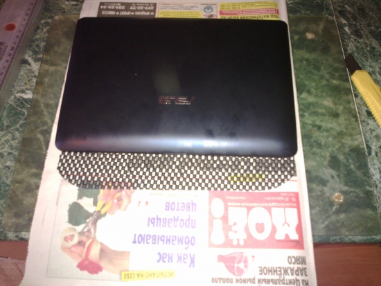 коврик нужно подрезать, чтоб он точно лег в углубление панели, иначе будет заворачиваться и не будет держаться. Мне повезло, так как у меня под рукой был такого же размера нетбук*)