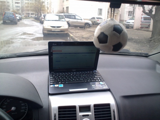 И даже любимый нетбук теперь очень комфортно себя чувствует на панели и не норовит куда нибудь уехать на повороте*)