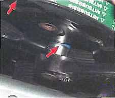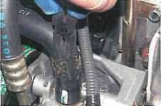 Паасатижами ослабьте хомут крепления шланга подачи жидкости к патрубку насоса гидроусилителя.