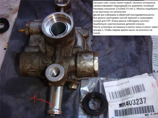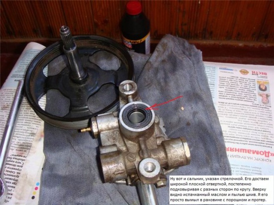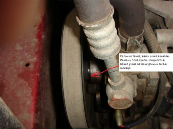 Сальник насоса ГУР нуждается в замене, если имеется течь жидкости в районе шкива