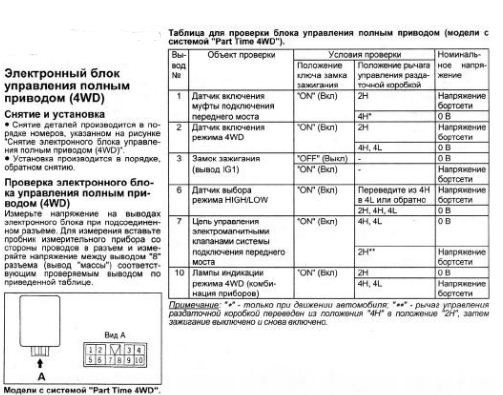 Всем привет. Имеем проблемный Mitsubisi Pajero Sport 2003 г. с неотключаемым передним приводом. В режиме 2H на пневмоклапана не приходит +. При проверке согласно приведенной таблице на 2-м пине при включении зажигания появляется 8,5 В , хотя должно быть 12В. Вопрос: эти 12В приходят на блок или он сам их выдает? Если приходят, то откуда? Все три датчика ( два на раздатке и один на переднем мосту) заменены, проводка к ним исправна. Если принудительно подать 12В ( которые должны выходить с 7-го пина блока) на пневмоклапана, то передний мост отключается. Спасибо за советы