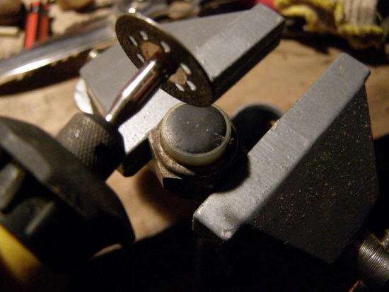Дремелью с пилящей насадкой по направлению расположения провода сделал пропил: