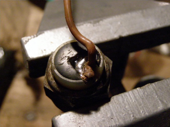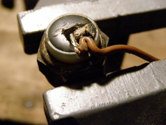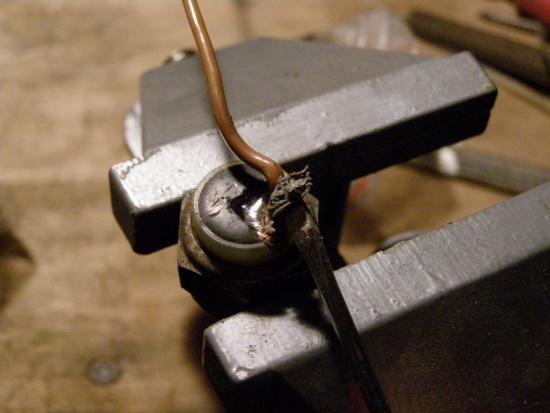 припаял к очищенному проводу новый: