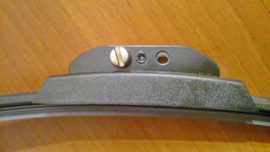 Итак, на что меняем? Прочесав инет, выбрал кое-что. Прочесав десяток магазинов и перелапав десятки же щеток «всех цветов и размеров», опытным путем пришел к следующему выводу: из-за хитрого, а реально - дюже «своеобразного» крепления ни одна щетка, ни один адаптер не подошел. Кроме одной-единственной - немецкой alca Super Flat Graphit (Art.048000) на 45 см. Дело в том, что ширина крепежной рамки практически у всех щеток - 10...11 мм, а у нашей - 12 мм, и поэтому щетка просто не налезает на поводок, не говоря уже о типе крепления. Чем оказалась хороша alca Super Flat. Ну, графитовая щетка, очень удачный дизайн самой щетки - плоская, без спойлера, конструкция с красивыми округлыми наконечниками, что придает ей «уместность» (ну, что это не колхоз, когда мы, скажем, пассажирскую щетку ставим на заднее стекло). Но главное – это металлический (не силуминовый!) и глубокий узел крепления – самое то, что надо.