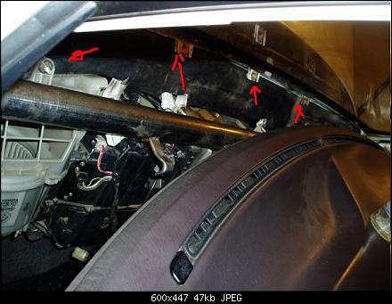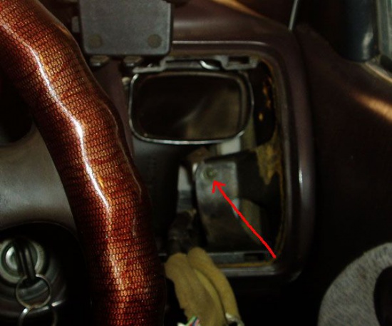 Снимаем бардачок, и откручиваем гайку с водительской стороны.